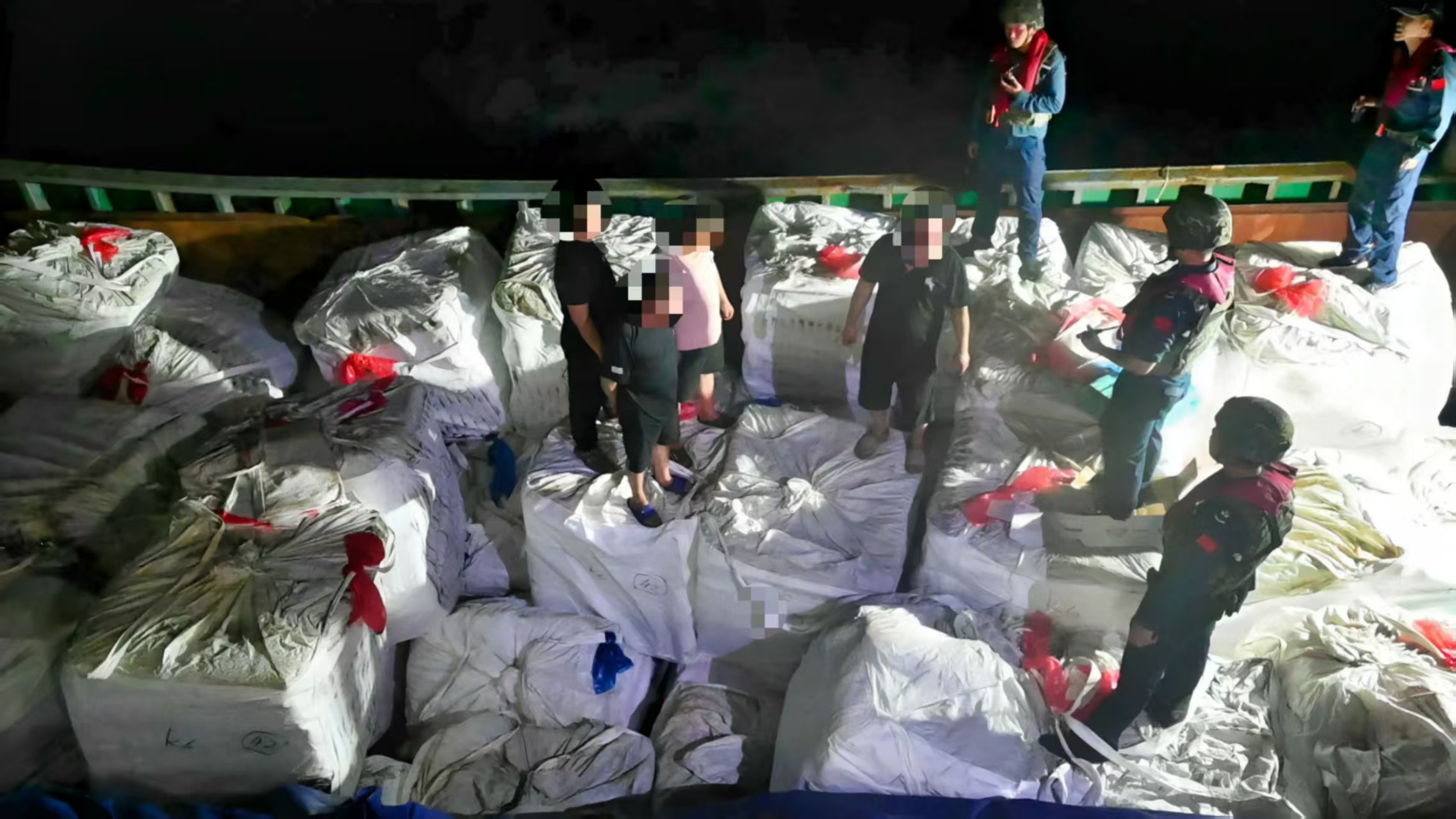 当晚21时许,温州海警局执法艇巡逻至大门岛附近海域时,发现1艘“三无”钢质船舶,该船未开启AIS和任何照明设备,靠近时能闻到明显臭味,形迹可疑。经登临检查发现,该船上装有大量白色编织袋,袋内有牛肚等走私冻品约150吨,部分冻品已出现腐烂发臭迹象,随船无任何所载冻品的合法来源手续及检验检疫证明,涉嫌走私。