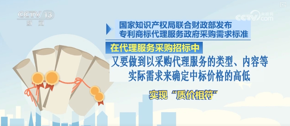 发布会上介绍,国家知识产权局联合财政部发布专利商标代理服务政府采购需求标准,在代理服务采购招标中,既要提高服务内容和质量标准的评价权重,降低价格因素评价权重,避免“不论服务类型、内容和质量,唯低价者得”,又要做到以采购代理服务的类型、内容等实际需求来确定中标价格的高低,实现“质价相符”。