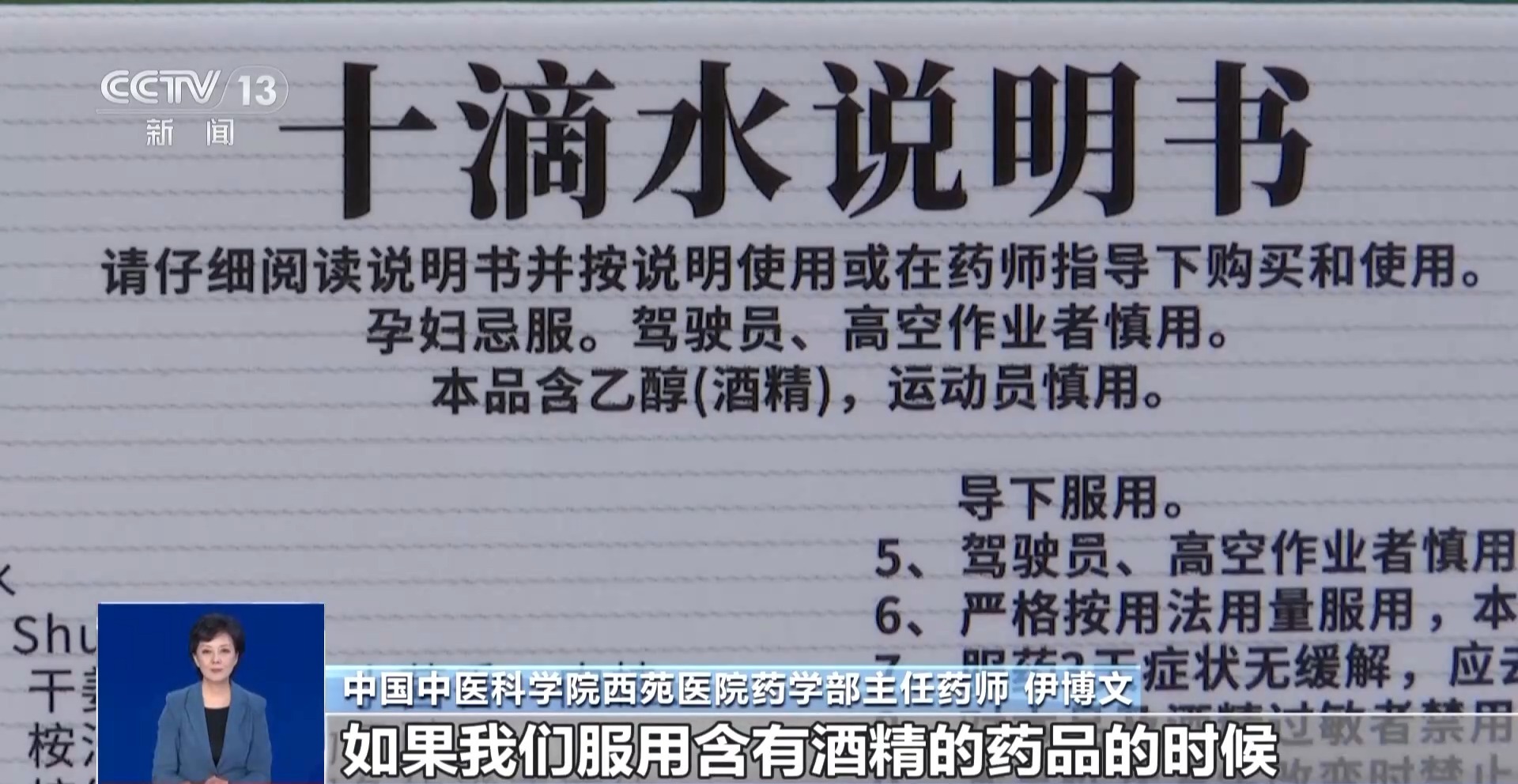 中国中医科学院西苑医院药学部主任药师 伊博文:最典型的一个特征,就是去观察说明书里面成分项下是否明确标注有乙醇。如果我们服用含有酒精的药品的时候,要避免服用像头孢菌素一类的甲硝唑、替硝唑这样的抗生素,防止发生双硫仑样的反应。