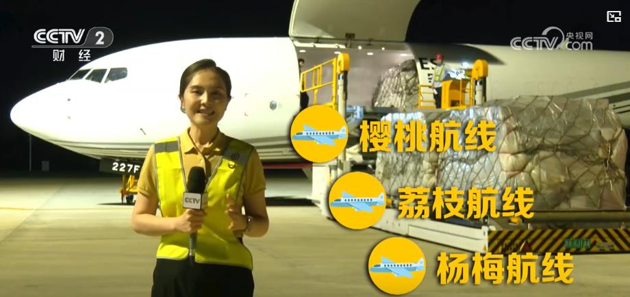 总台央视记者 马佳伦:此刻,凌晨采摘下树的杨梅正在填满身后这架杨梅专机,随后再通过“空空中转”“地空中转”的方式,最快24个小时就能抵达北京客户手中。今年五月,快递日均业务量超过5.5亿件,这其中不乏五湖四海鲜货的身影。鲜货直达餐桌的背后,樱桃专线、荔枝专线、杨梅专线上,一架架飞奔的鲜果专机成就了餐桌上的夏天。