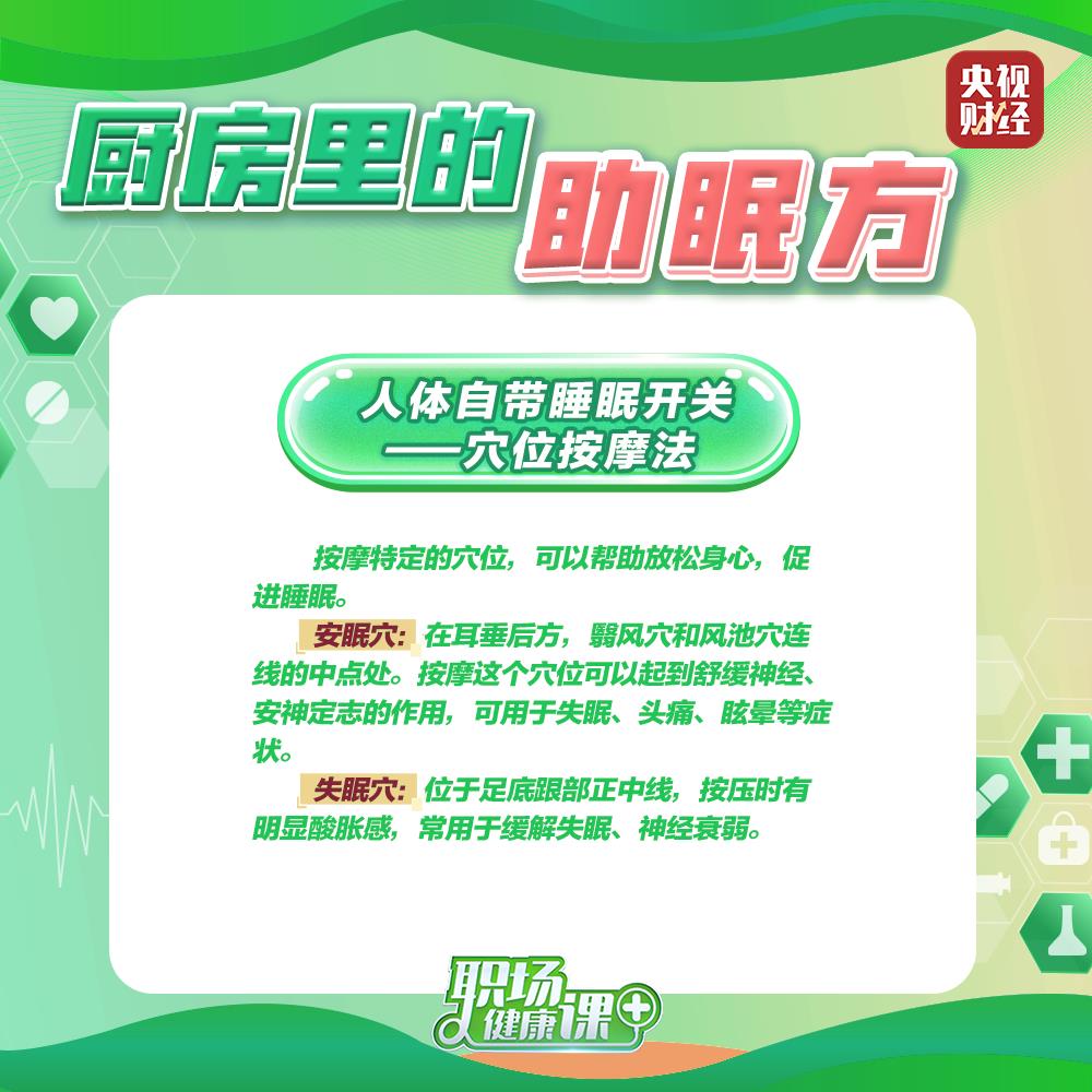 此外,人体自带睡眠开关,按摩特定的穴位,可以帮助放松身心,促进睡眠。其中,