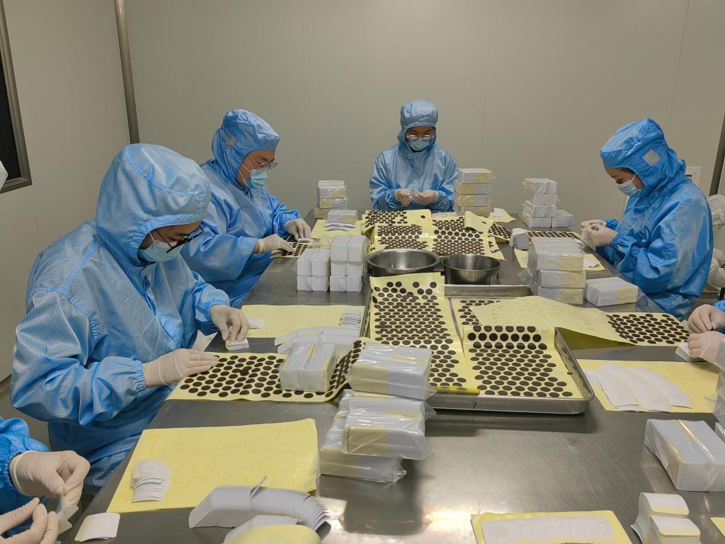 穿上鞋套和洁净服、戴上口罩和帽子走进车间,眼前,药师们正在制作“温阳化痰穴贴”。这种穴贴已连续多年作为北京市“冬病夏治三伏贴”专项工作指定用药,供全市700余家医疗机构调剂使用。