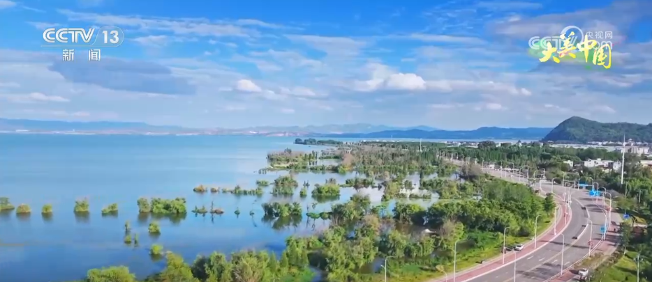 下面我们到云南滇池畔的湿地去看看,走进湿地,仿佛置身于一幅绚丽多彩的生态画卷,连片的水杉林、摇曳的芦苇和成群的候鸟,与一旁川流不息的公路互相映衬,勾勒出一道动静相宜、人与自然和谐共生的风景线。