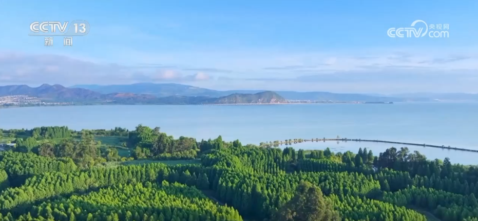 湿地周围曾经围湖造田的痕迹,在近年来的综合治理下已逐渐消失。当地持续扩大绿色生态空间、提升生态系统质量,通过采取控源截污、联排联调、科学补水等措施,推动滇池保护治理走向纵深化、精细化。