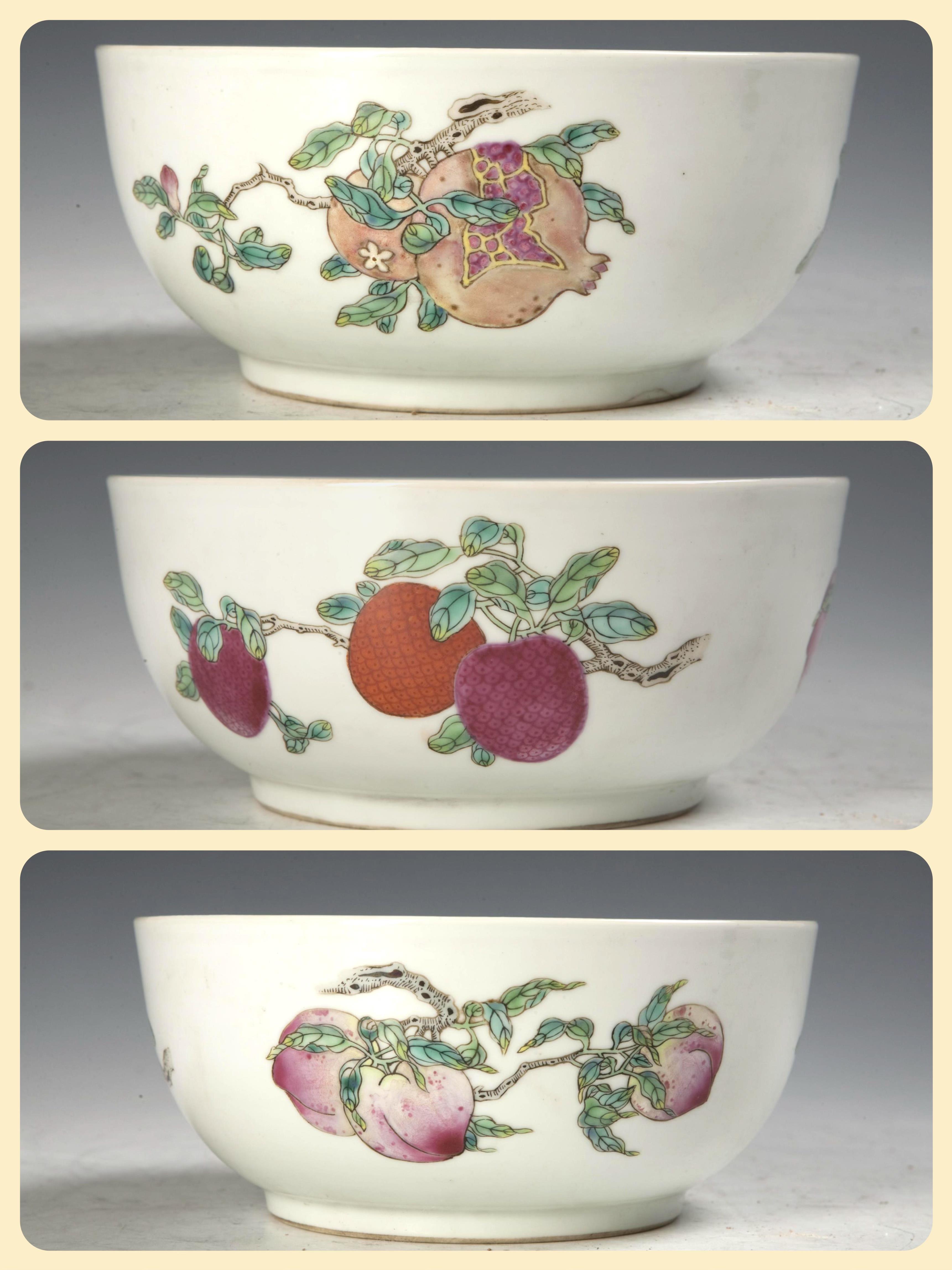△清乾隆款粉彩三果纹碗,天津博物馆藏。