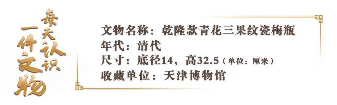 △清乾隆款青花三果纹蒜头瓶,天津博物馆藏。