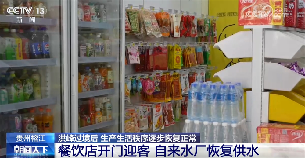 6月30日中午,记者在榕江县环城路看到,沿街的多家便利店、餐饮店已经开门迎客,有的店铺商家已经恢复正常供水和用电。