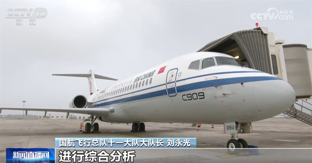 国航飞行总队十一大队大队长刘永光称:“C909首次身披国旗飞出国门,作为机长我感到无比荣幸。我们对该航线进行了系统性运行风险评估,结合C909的性能特点,从航路规划、空域结构、机场运行标准及航空气象特征等核心要素开展综合分析,制定了详细的飞行程序。”