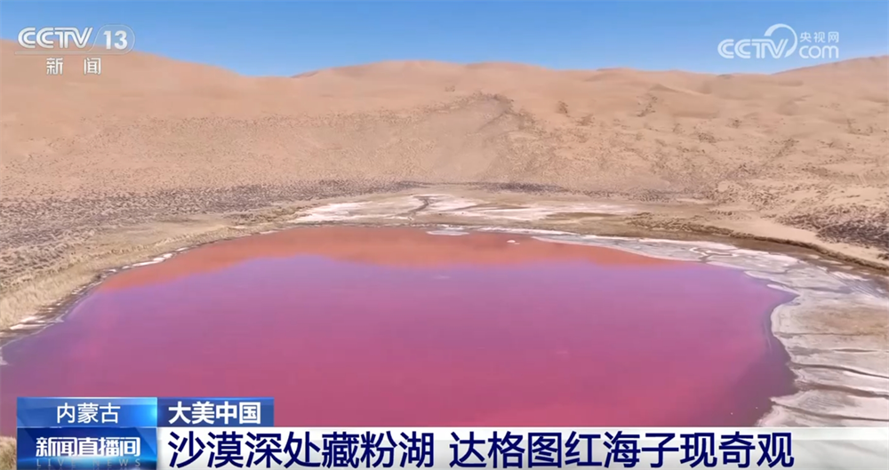 央视网消息:眼下,在内蒙古阿拉善右旗巴丹吉林沙漠腹地,达格图红海子迎来最佳观赏期。粉色湖水与金色沙地相映成趣,勾勒出震撼人心的视觉盛宴。