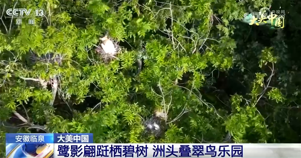 眼下,在安徽省临泉县的鹭鸟洲湿地公园,成千上万只的鹭鸟在此筑巢安家、繁衍生息,一派生机勃勃。