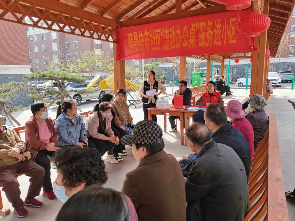 在乌海市维邦佳园小区,社区、住建局、自来水公司等部门的工作人员一同通过“流动办公桌”为居民答疑解惑。(受访者供图)