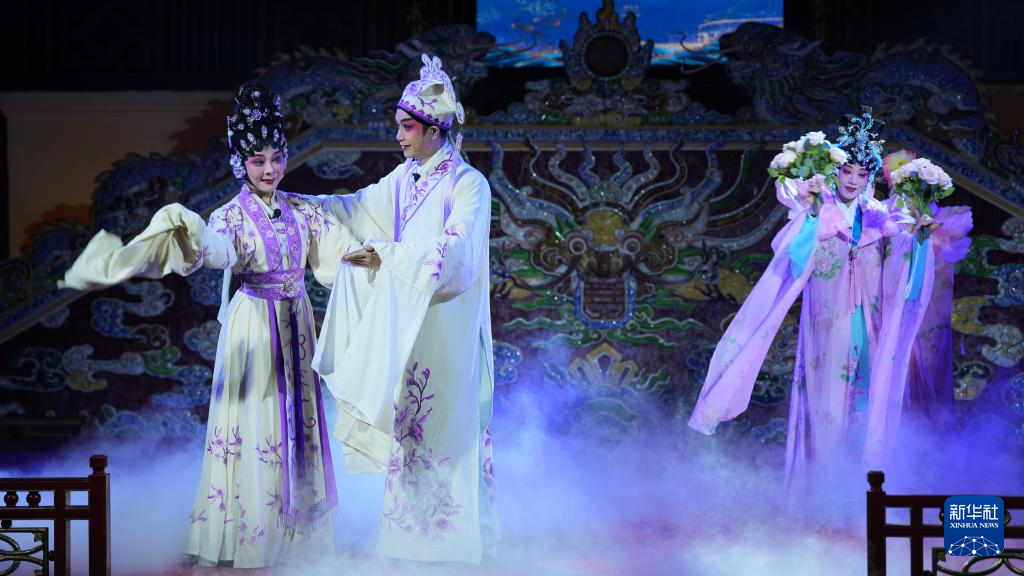 6月29日,中国粤剧经典剧目《牡丹亭·惊梦》在越南顺化皇城阅是堂剧院上演。新华社记者 胡佳丽 摄