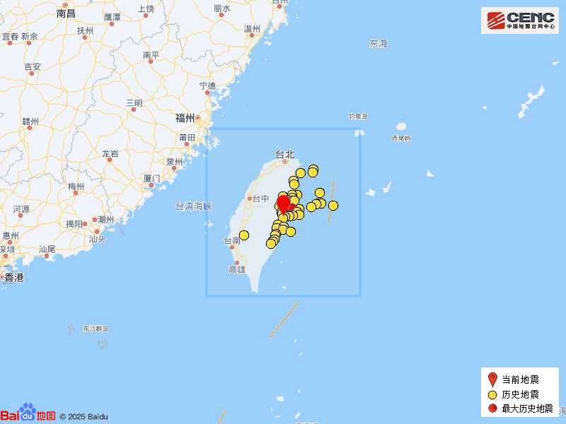 历史地震:根据中国地震台网速报目录,震中周边200公里内近5年来发生4级以上地震共380次,最大地震是2024年4月3日在台湾花莲县海域发生的7.3级地震(距离本次震中22公里),按震级大小前50次历史地震分布如图。