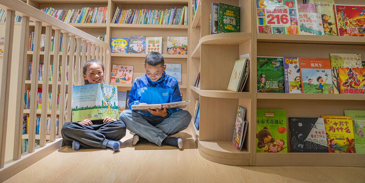 孩子们在位于西藏那曲市色尼区南部新城的“温暖嘉·色尼城市书房”看书(2024年6月17日摄)。新华社记者 丁增尼达 摄