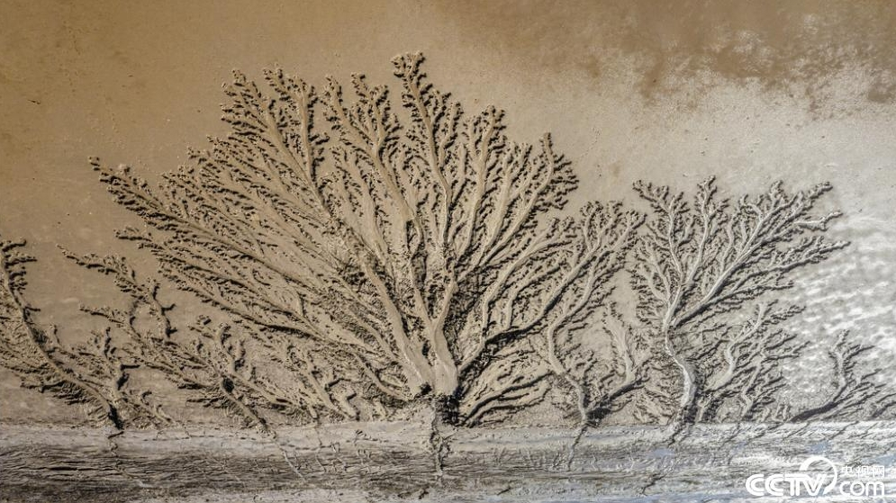 随着黄河小浪底调水调沙,黄河河床水位急剧变化,出现精美“沙画”景观,有的如起伏的山峦,有的如挺拔的大树,美不胜收。
