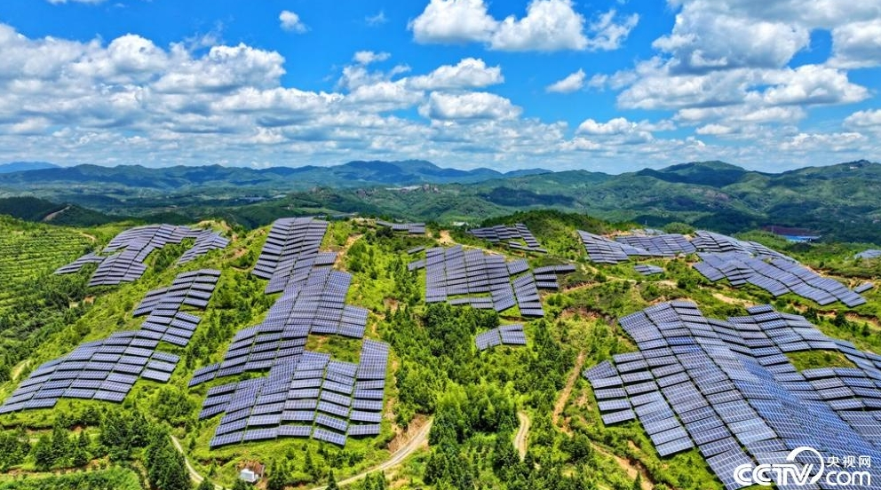 江西省赣州市石城县琴江镇汉坑村的光伏发电项目基地,荒山坡上鳞次栉比的光伏发电板蔚为壮观。