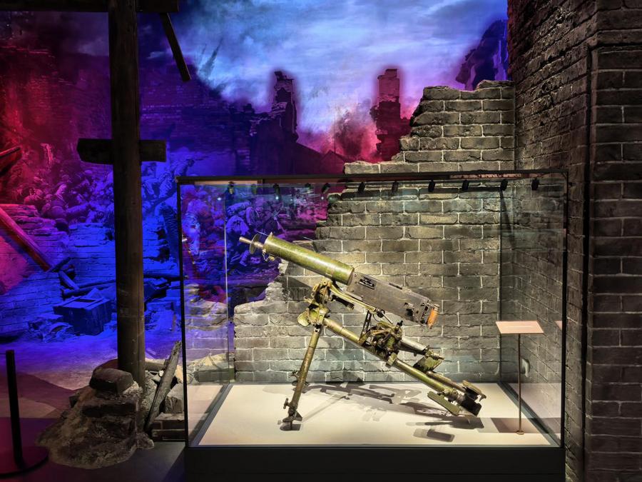 台儿庄战役中中国军队使用过的马克沁重机枪。新华社记者 孙尉轩 摄