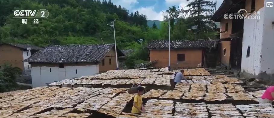 房前屋后、院落晒场铺满了经过压榨发酵的竹笋,通过日光晾晒,空气中弥漫着笋干特有的清香。