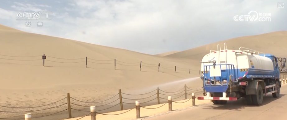 在鸣沙山月牙泉景区,当地进一步完善高温应急方案,在游客通行区域喷淋降温,并全天候开放景区医务室,配备防暑药品、应急救援包等,有效应对突发状况。