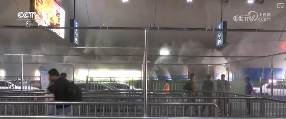 7月以来,湖北武汉热浪滚滚,截至7月10日,湖北省气象台已经连续一周发布高温预警,武汉局地最高气温已经超过41℃。为应对高温天气,武汉火车站及时启用东广场的800米喷雾降温系统,为排队候车旅客增湿降温。