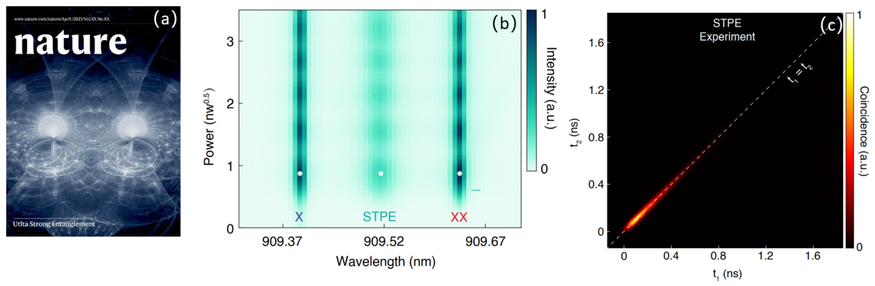 “我们就像在纳米尺度上打造了一个专门生产纠缠光子的工厂。”刘顺发表示。该研究基于纳米尺寸的固态“人造原子”结构,提出了一种腔诱导的自发双光子辐射方案,在国际上率先实现了与单光子辐射强度相当的自发双光子辐射,突破了“光子辐射的二阶量子过程必然远弱于一阶过程”的传统认知,成功制备出保真度高达99.4%的按需触发式新型纠缠光子对源。“这一指标意味着我们的纠缠光子‘心灵感应’的强度极高,也显示出这项技术在提升量子通信安全性、量子计算可靠性、量子计量精度等方面的巨大潜力。”
