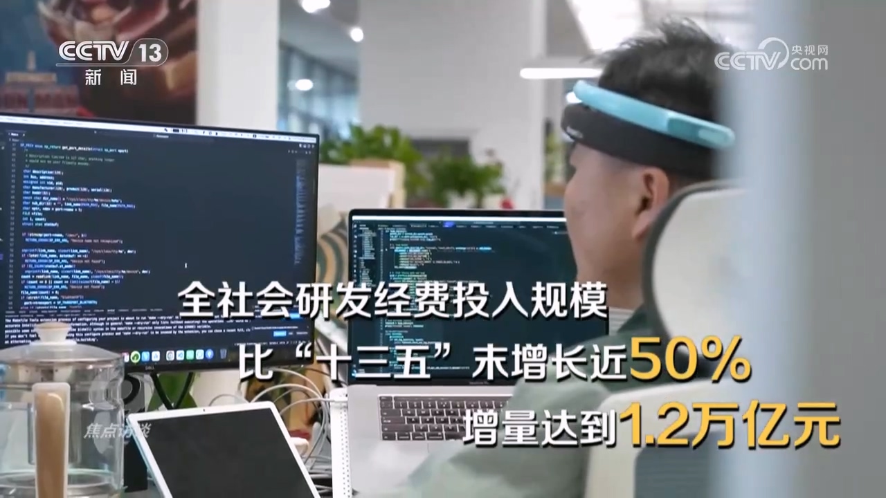 这是突破技术封锁、自立自强的五年。我国研发投入再创新高,去年全社会研发经费投入规模比“十三五”末增长近50%,增量达到1.2万亿元。全球百强科技创新集群数量达到26个,占比全球第一,高新技术企业超过46万家。人工智能、量子科技、载人航天、深空探测等领域创造了多个全球“首次”和“第一”。这些都彰显着中国不断提升的创新能力。
