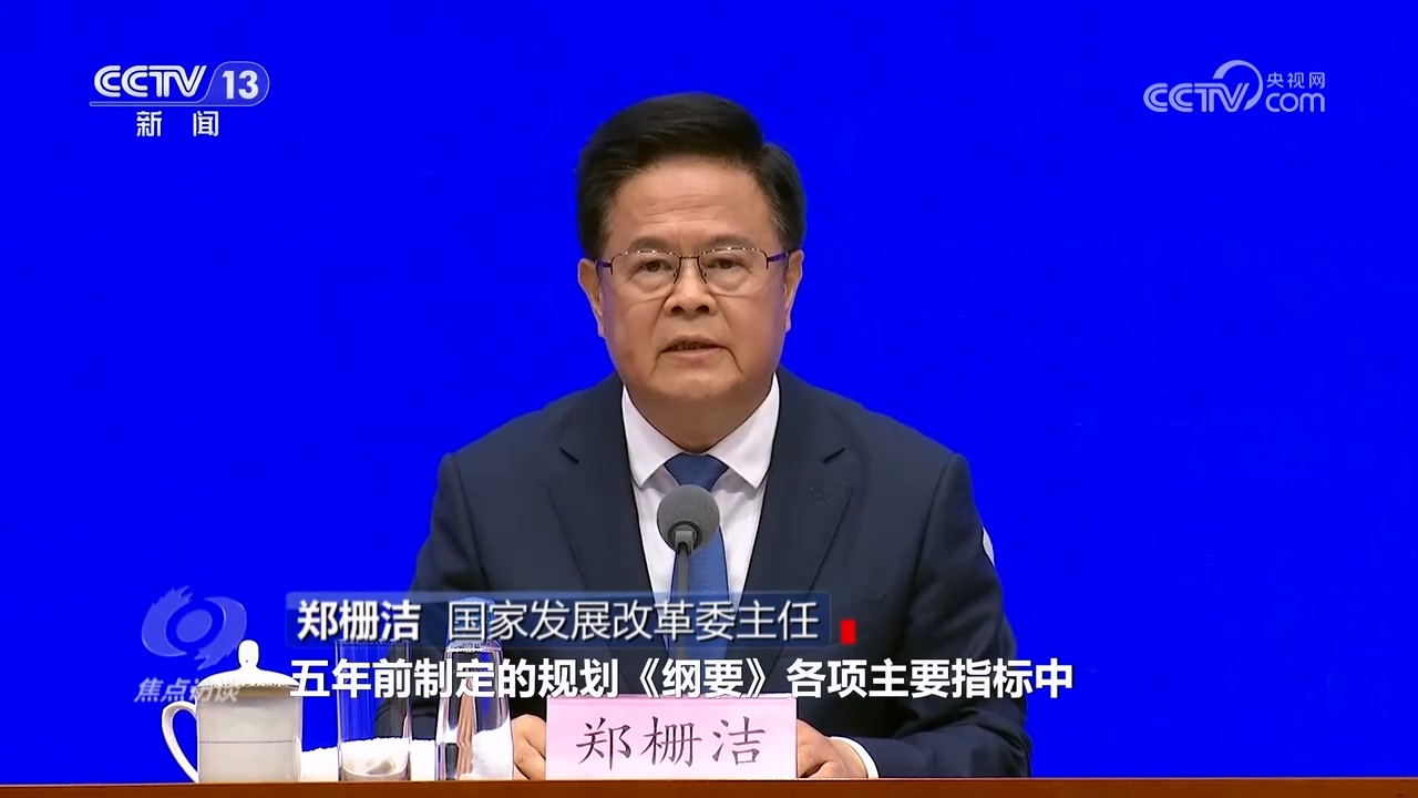 国家发展改革委主任郑栅洁:“5年前制定的规划《纲要》各项主要指标中,经济增长、全员劳动生产率、全社会研发经费投入等指标进展符合预期;常住人口城镇化率、人均预期寿命、粮食和能源综合生产能力等8项指标进展超过预期;规划确定的战略任务全面落地,部署的102项重大工程顺利推进。”