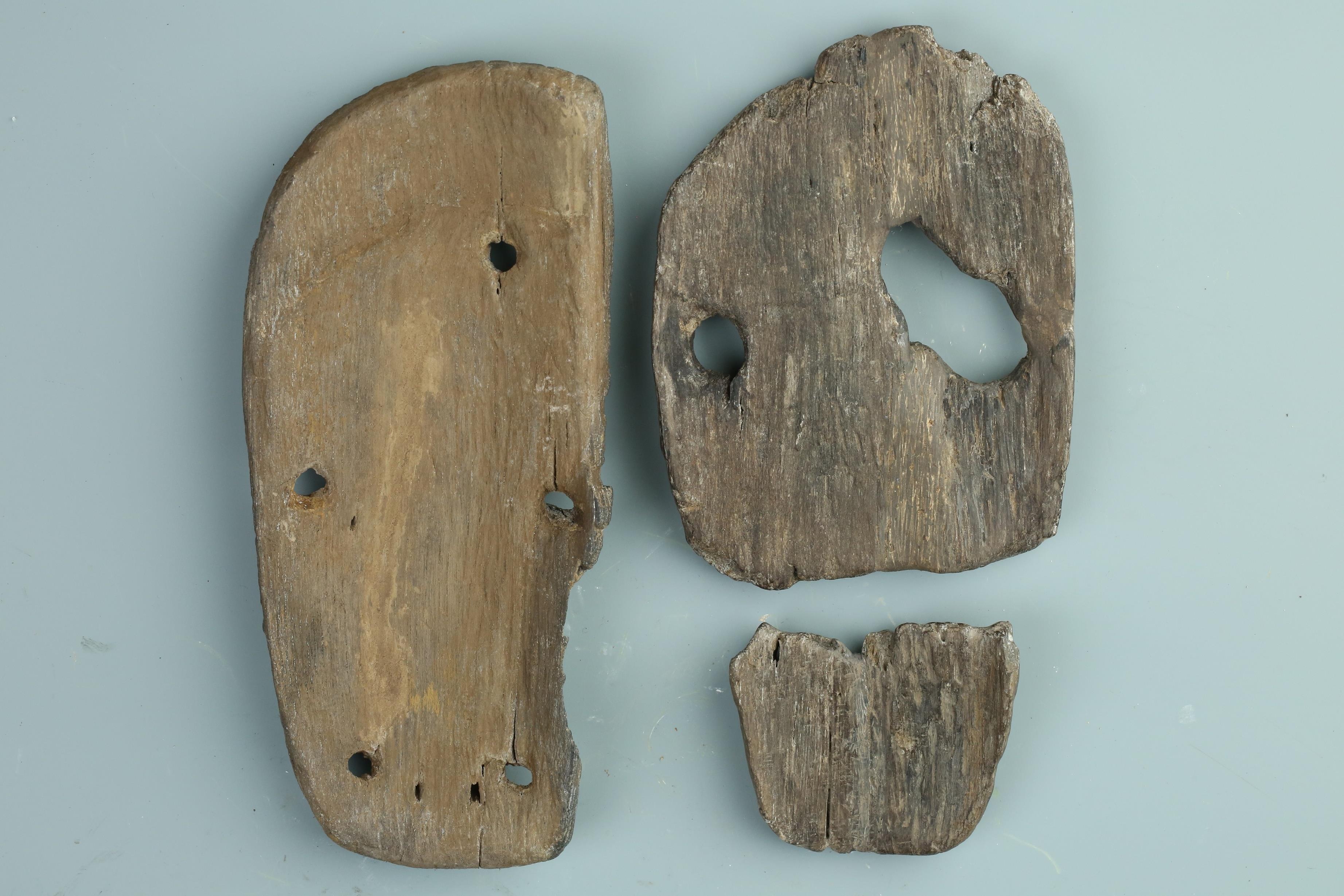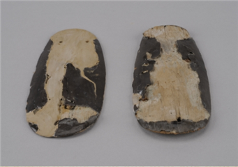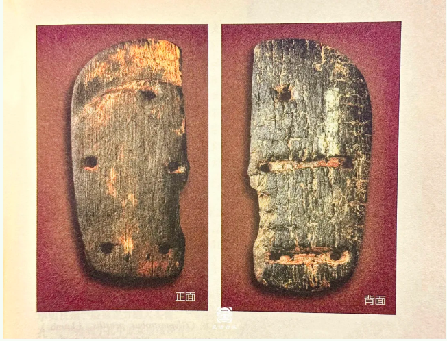 △ 慈湖遗址出土其中一只木屐的正、背面。