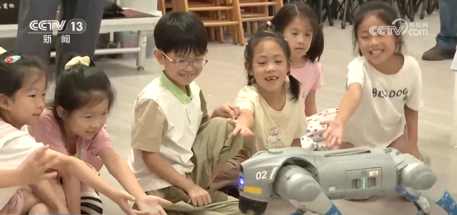 7月10日,在上海市徐汇区向阳小学的暑托班里,孩子们正跟机器人和机器狗进行互动,握手、拥抱、触摸。不光有机器狗,隔壁教室的格斗机器人体验课同样火爆。孩子们两人一组,操控手柄指挥机器人“对战”,无论亲自上阵还是加油助威,都玩得不亦乐乎。