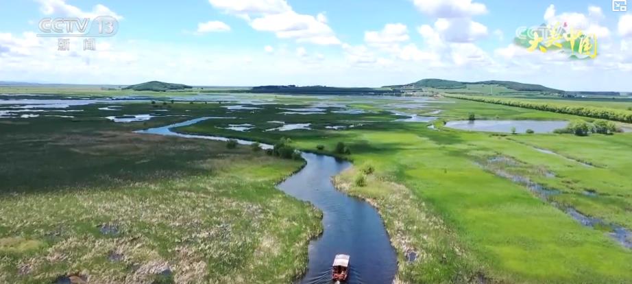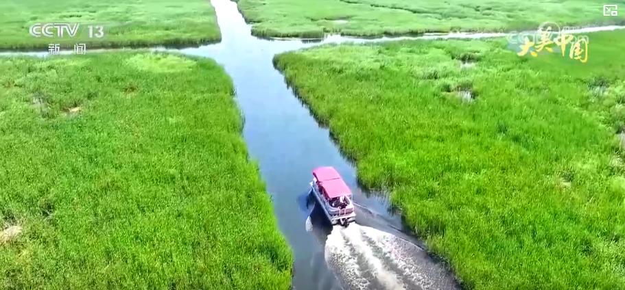 在佳木斯市富锦国家湿地公园,来到这里的游客同样可以坐船游览,碧绿的芦苇随风摆动,清澈的湖水波光粼粼,放眼望去,一望无际的湿地景观让人流连忘返。据了解,近年来,当地持续推进退耕还湿工程,如今,富锦国家湿地公园已成为170多种鸟类的栖息家园。