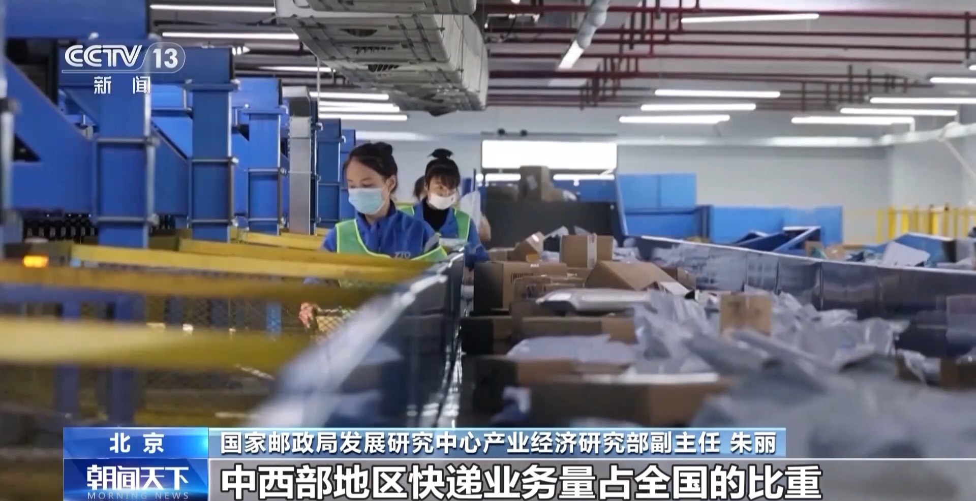 国家邮政局发展研究中心产业经济研究部副主任 朱丽:中西部地区快递业务量占全国的比重较上年同期提升1.4%。贵州、陕西、宁夏、新疆等地快递业务量同比增长超35%。