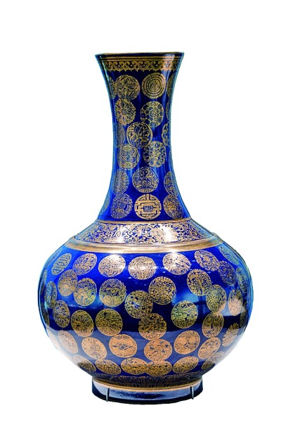 图为清代宣统款霁蓝描金团花瓶。金沙博物馆供图