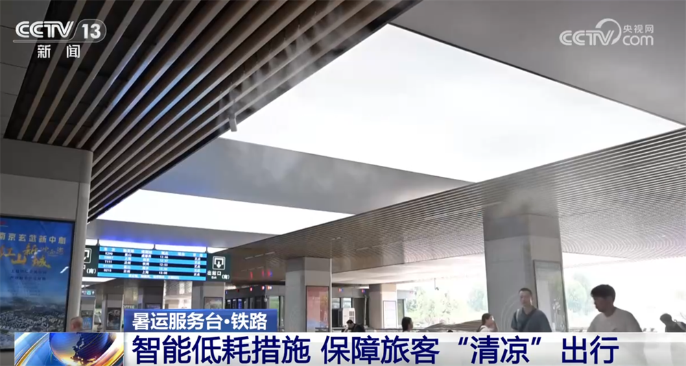 在南京站,这些安装在南广场进站站台和出站廊道的喷淋降温系统每隔半小时自动喷淋五分钟,每天从上午9点至晚上7点持续喷淋,给候车的旅客带来不少清凉。