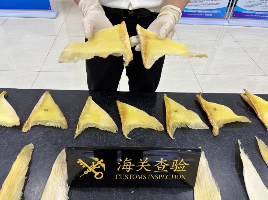 7月9日,经拱北海关技术中心鉴定,上述鱼翅为大青鲨制品和直齿真鲨制品,两类物种均被列入《濒危野生动植物种国际贸易公约》(CITES)附录Ⅱ。