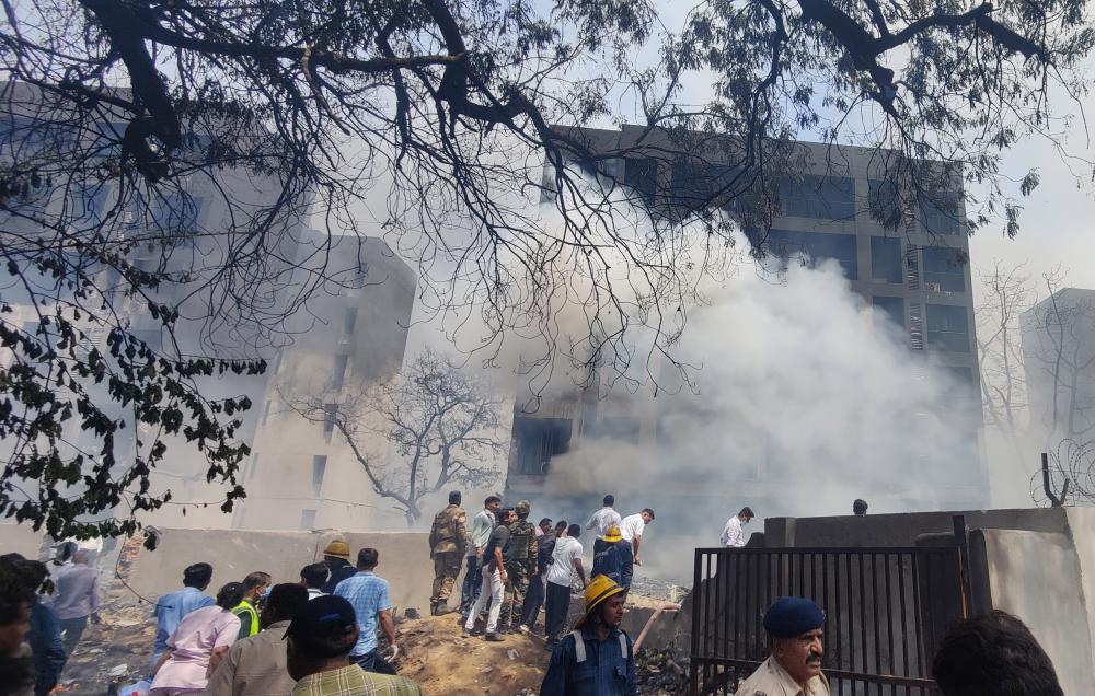 6月12日,在印度古吉拉特邦艾哈迈达巴德,人们在客机失事现场进行救援。新华社/印度联合新闻社