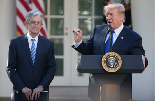 △美联储主席鲍威尔(左)和美国总统特朗普
