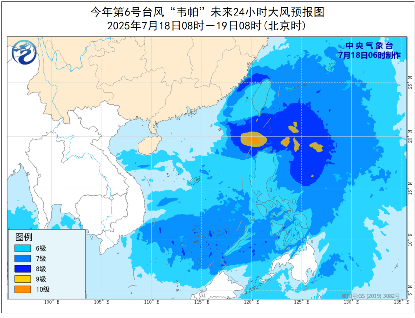 受“韦帕”和西南季风的共同影响,今天,南海大部、巴士海峡、台湾海峡、台湾以东洋面、东海南部将有6~7级大风、阵风8~9级,南海东北部偏东海域、巴士海峡、台湾海峡风力有8~9级,阵风10~11级,台风中心经过的附近海域风力有10级,阵风11~12级;台湾岛中东部有大到暴雨,部分地区有大暴雨(100~150毫米)。