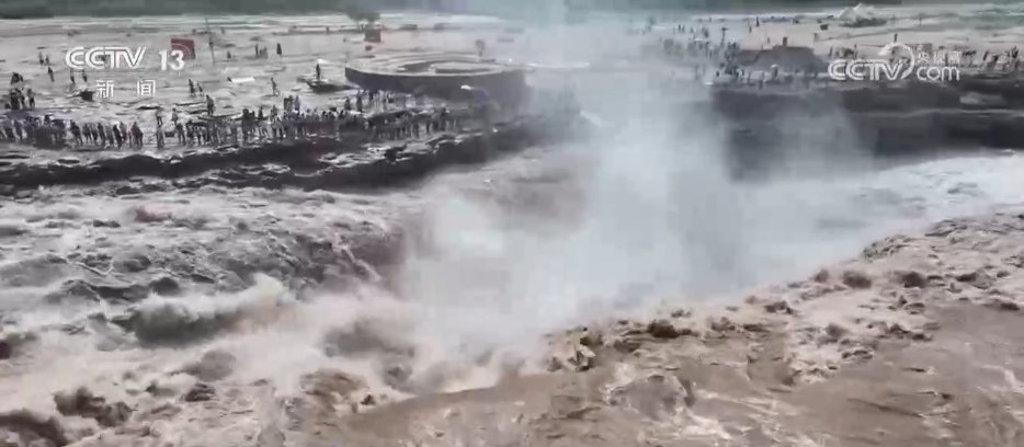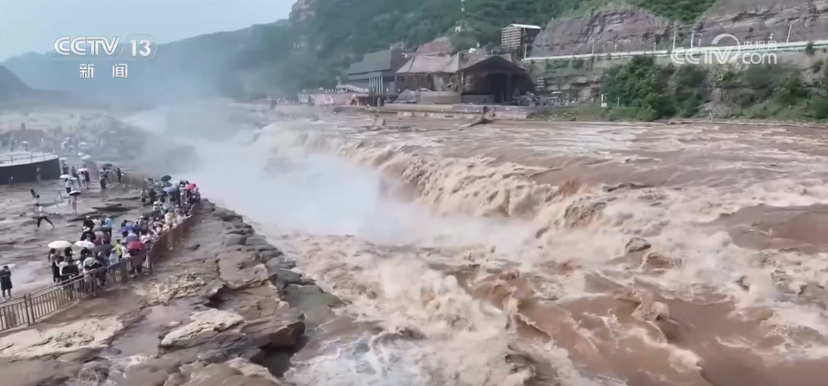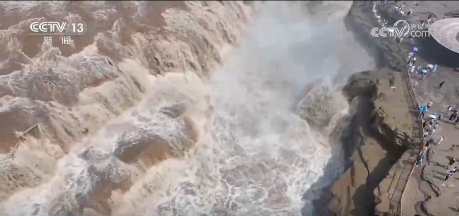 受上游降雨和水库调节放水的双重影响,位于山西吉县和陕西宜川县交界的黄河壶口瀑布呈现出“金流飞瀑”的壮美景观,吸引了众多游客前来观赏。