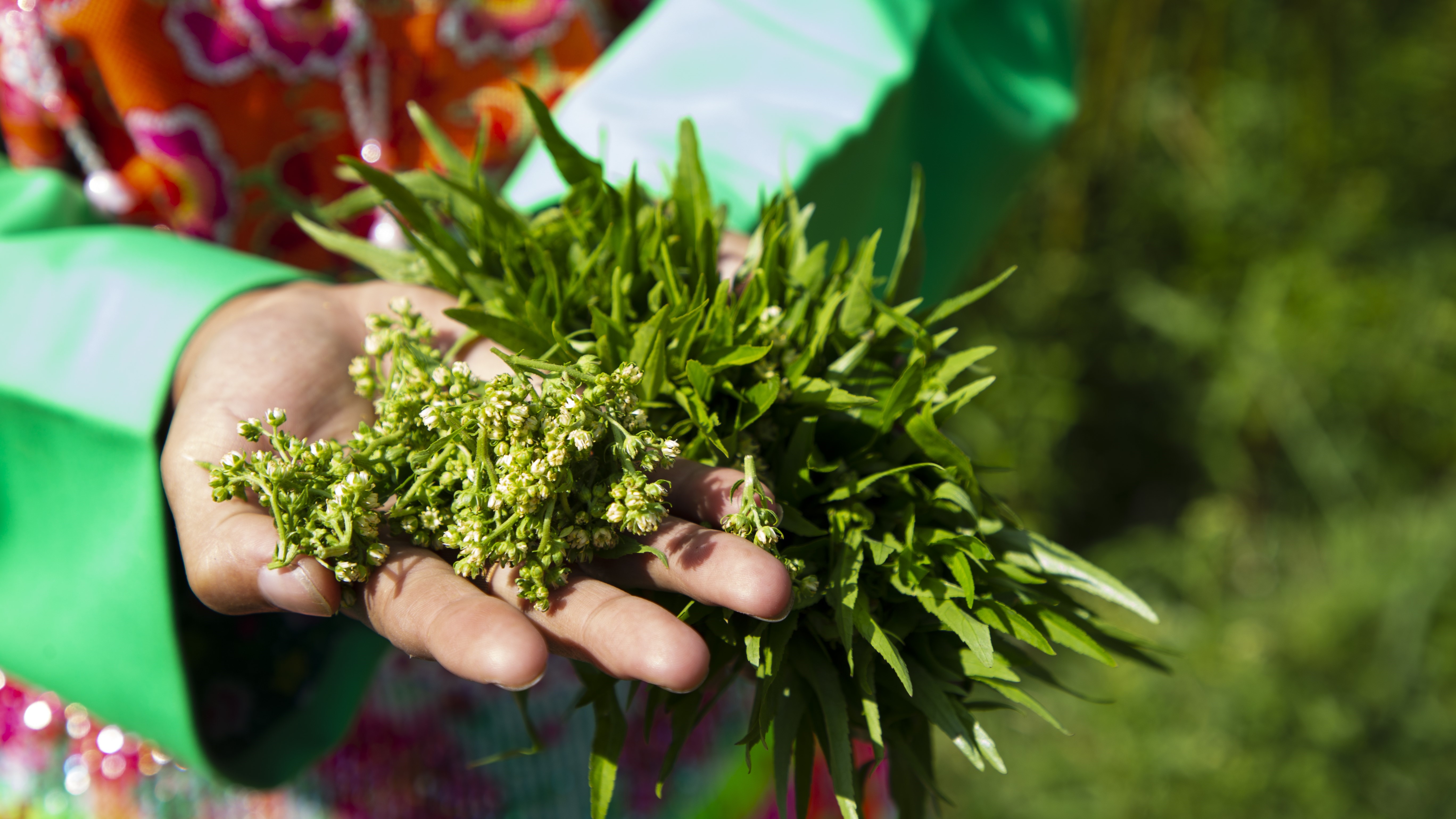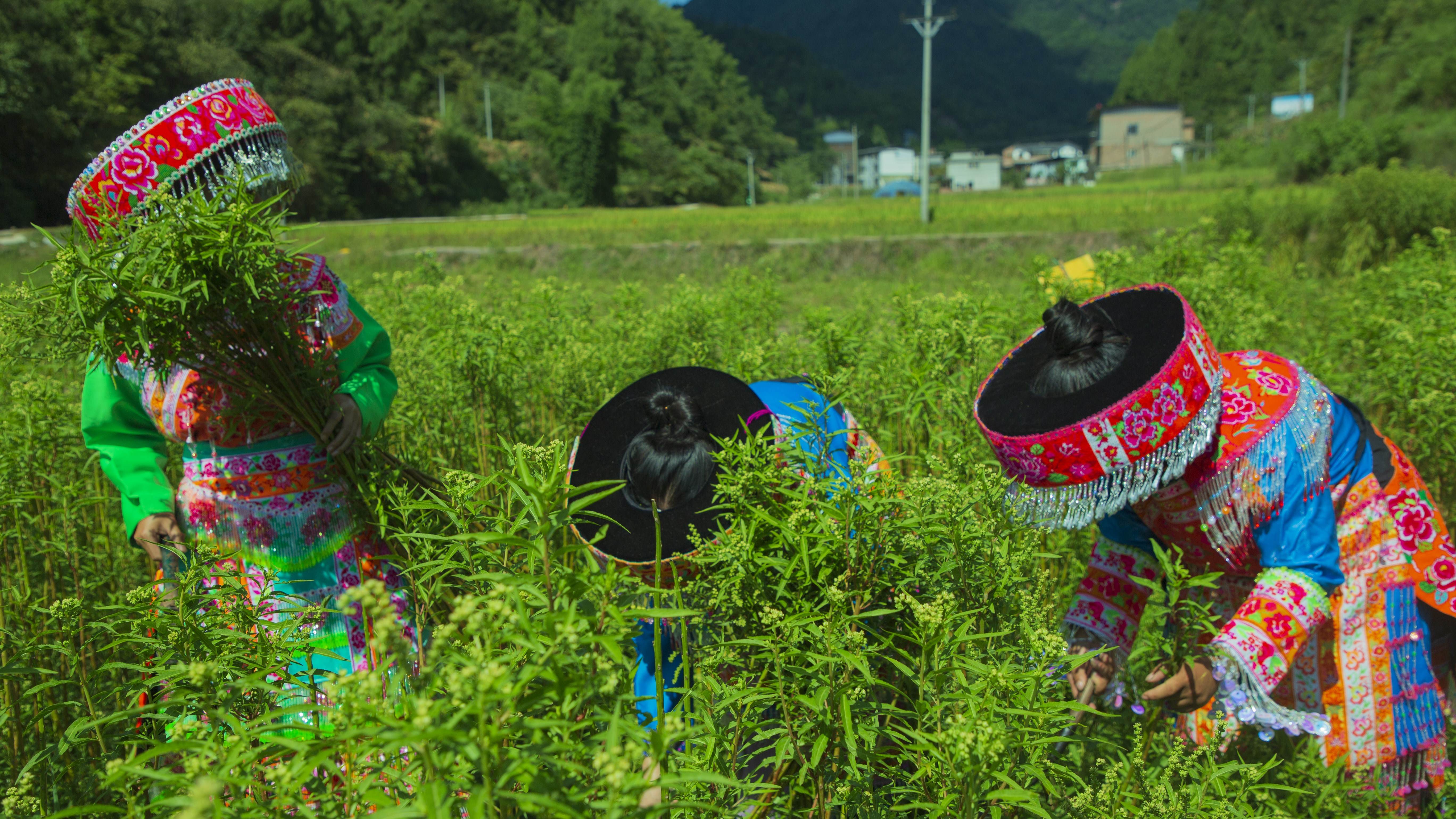不同于茶叶炒制,苗医认为可单味入药的赶黄草需全株采收,经烘晒后入药,不仅清肝利胆功效更佳,还能调和体内“水火平衡”。黄荆老林全年平均气温17.9℃,平均海拔1074米,属亚热带季风性湿润气候,空气湿度大、对流天气频繁,形成“一日有四季,十里不同天”的独特小气候。生活在湿地环境中的居民长期劳作,易患“水激病”(即黄疸型肝炎),而熬煮赶黄草水饮用,对护肝有显著效果。