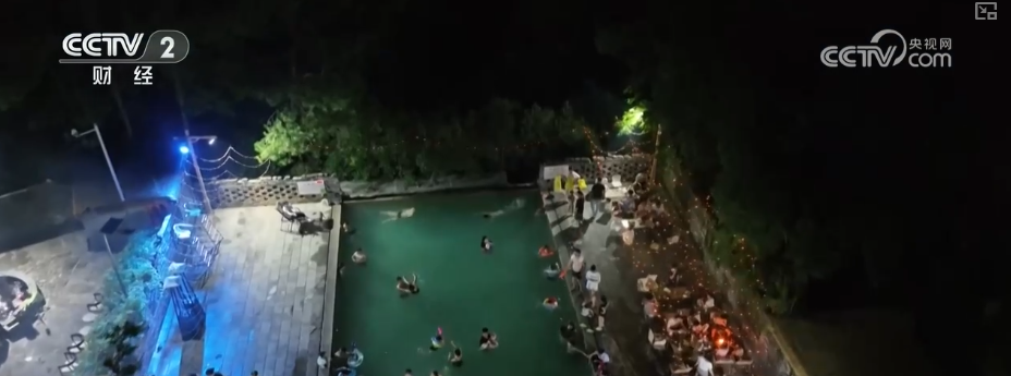 夜幕降临,崇阳一处温泉景区热闹非凡。除了可以泡温泉放松身心,景区还推出了亲子戏水、自助烧烤、特色演艺等丰富多彩的夜游项目,吸引了众多游客前来体验。