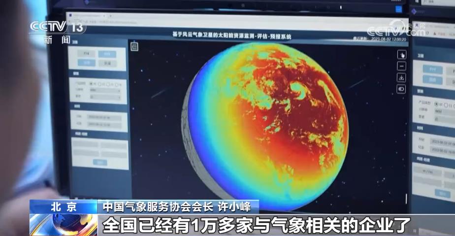 中国气象服务协会会长 许小峰:现在气象经济产值已经达到了2000多亿,全国已经有1万多家与气象相关的企业了。它涉及了国家发展许多万亿级的产业,包括新能源、低空经济,所以可以看到气象经济其实潜力是非常大的。