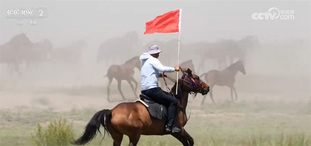 可能有人会好奇,这么多马同时奔跑,是怎样保持队形的?其实伊犁马是草原上的“奔跑健将”,在快速奔跑的同时,它们还能找到自己和同伴的位置,非常默契地保持在一个安全的距离,也能形成一个非常漂亮的队形前进。另外,现场也可以看到有不少举着旗子的牧马人,他们都是经过挑选出来、骑马技术最好的,来维持马的阵型。