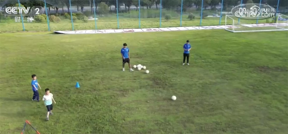 在江苏南京的一片足球场上,记者看到,有三组不同年龄段的小球员正在训练。“苏超”的持续火热加上暑假到来,不少家长为孩子报名了足球培训课。