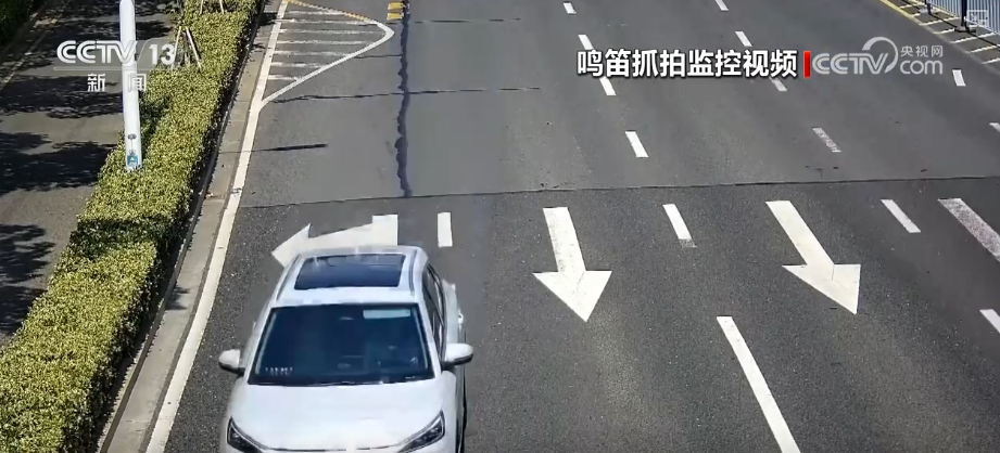 一辆白色轿车在通过禁止鸣笛路段时按响了汽车喇叭,这一声持续时间只有1秒的鸣笛声就被上方的声音探测装备精准识别捕捉到了。