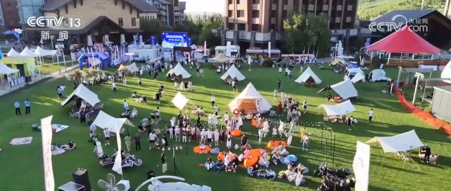这种模式既盘活了闲置资源,又拓宽了旅游场景。依托这些雪场资源优势,度假区又开发了观日出、夜爬路线。此外,山顶、湖畔、草坪三大类型露营区里,篝火、乐队演出、星空影院等活动接连不断,让雪场实现了夏季“不打烊”。