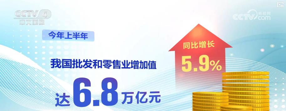 商务部发布数据显示,今年上半年,中国批发和零售业增加值达6.8万亿元,同比增长5.9%,占GDP比重为10.3%。