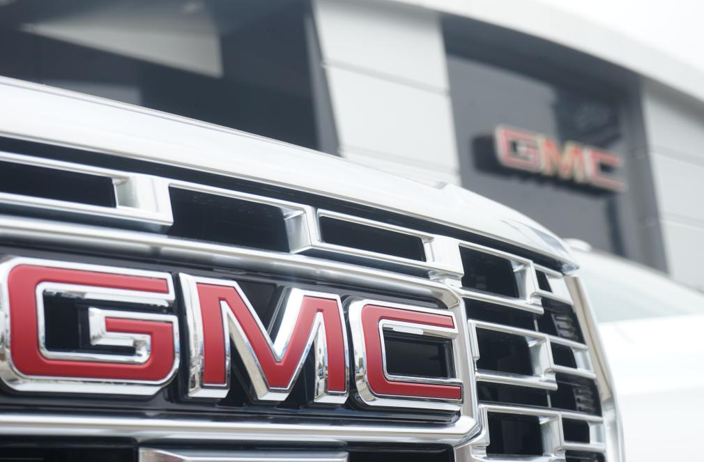这是7月22日在美国加利福尼亚州洛杉矶县西科维纳市拍摄的美国通用汽车公司旗下品牌GMC的汽车标识。新华社发(曾慧摄)