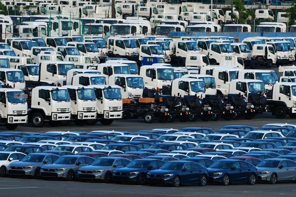 这是7月3日在日本横滨一处港口拍摄的待售车辆。新华社记者贾浩成摄
