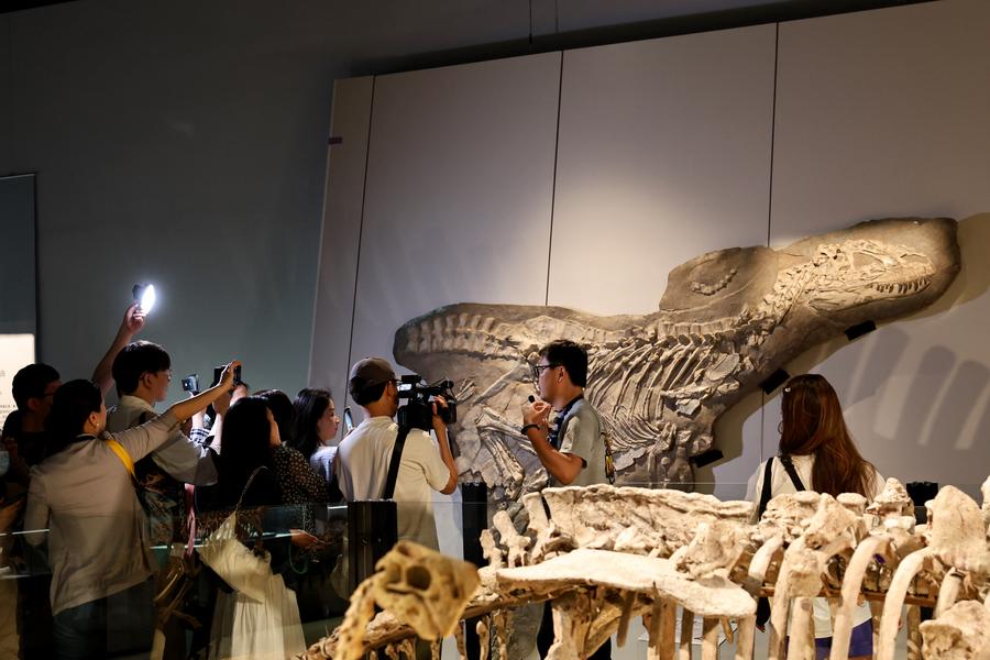 庞大的河南汝阳龙、“迷你”的奇异辽宁龙、顶级掠食者和平永川龙……上海自然博物馆(上海科技馆分馆)“龙吟九州·中国恐龙大展”空间人头攒动。据悉,这次展览汇聚来自全国12家科研院所和科普场馆的118件代表性恐龙标本和重要模型,在暑期创新推出“省市主题周”,邀请各地博物馆来沪联动。
