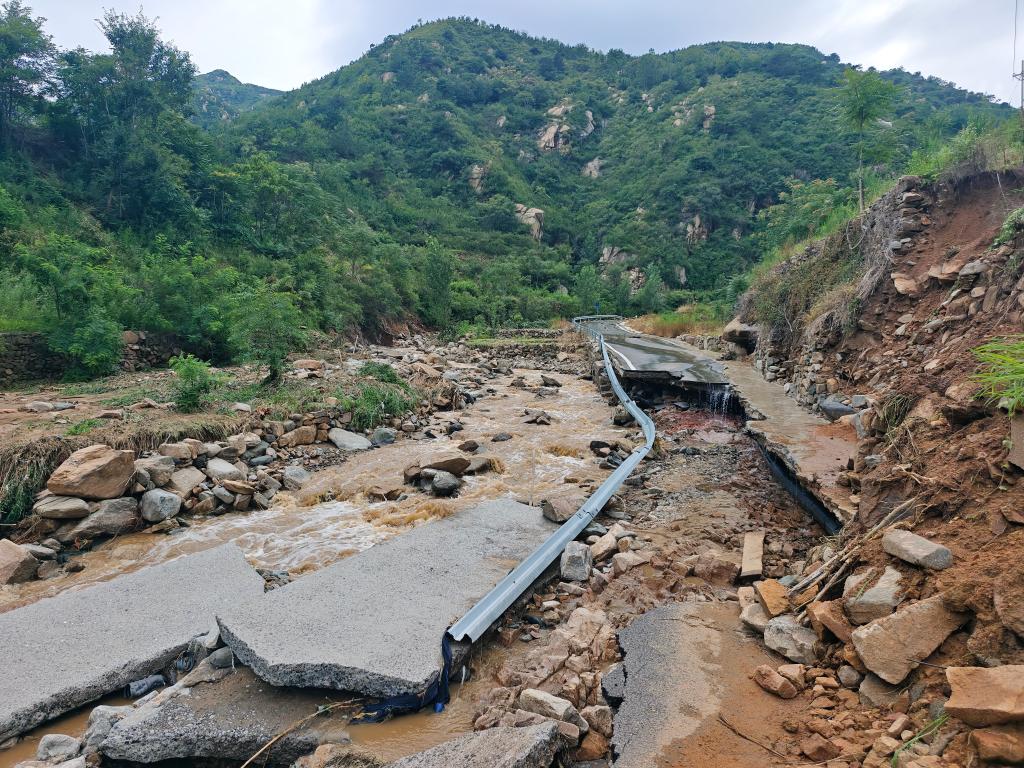 越往石屋子村行进,路况越差,有几处道路被完全损毁。“路没了!”面对一段完全塌方的道路,记者只能手脚并用地攀爬几块巨石绕行,这几个从山上滚落至此的庞然大物似乎在诉说着山洪的威力。